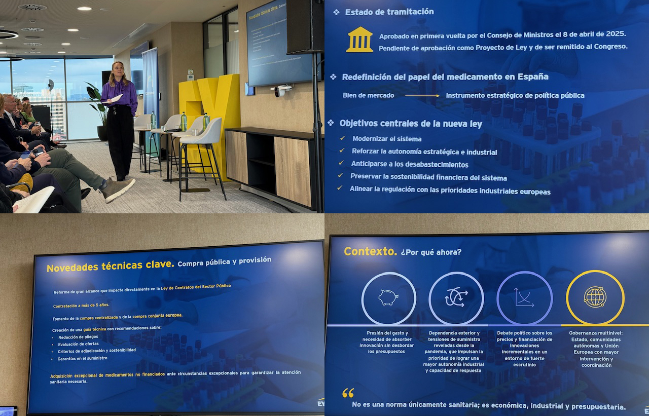 La futura nueva ley del medicamento supondrá un cambio profundo que condicionará el acceso a los fármacos. Actualmente se encuentra pendiente de aprobación como proyecto de ley para ser remitido al Congreso. Entre los cambios más importantes figuran mayores exigencias para la aprobación de fármacos, se podrá revisar la financiación pública una vez aprobado, deberán tener un impacto económico dinámico y se establecerá una compra conjunta europea. Esta normativa impactará en la actual ley de contratos del sector público y supondrá nuevas obligaciones reforzadas para la industria. También se establecerá un marco sancionador ampliado y planes de gestión del suministro. Estas conclusiones se han puesto de manifiesto en la jornada sobre la futura regulación celebrada en las oficinas centrales en Barcelona de EY y en la que han participado diferentes ponentes del sector farma.